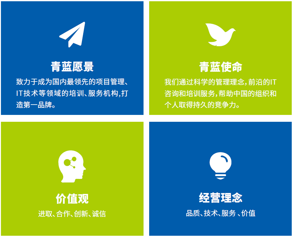 子曰:學(xué)不可以已。青,取之于藍(lán),而青于藍(lán)。深圳青藍(lán)咨詢服務(wù)有限公司(簡稱青藍(lán)咨詢)以青藍(lán)為名,致力于成為國內(nèi)領(lǐng)先的IT技術(shù)與管理類培訓(xùn)機(jī)構(gòu),為企業(yè)和個人提供有品質(zhì)、有服務(wù)、有價值的培訓(xùn)服務(wù)。