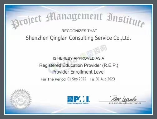 青藍(lán)咨詢PMI授權(quán)證書 PMP證書模版