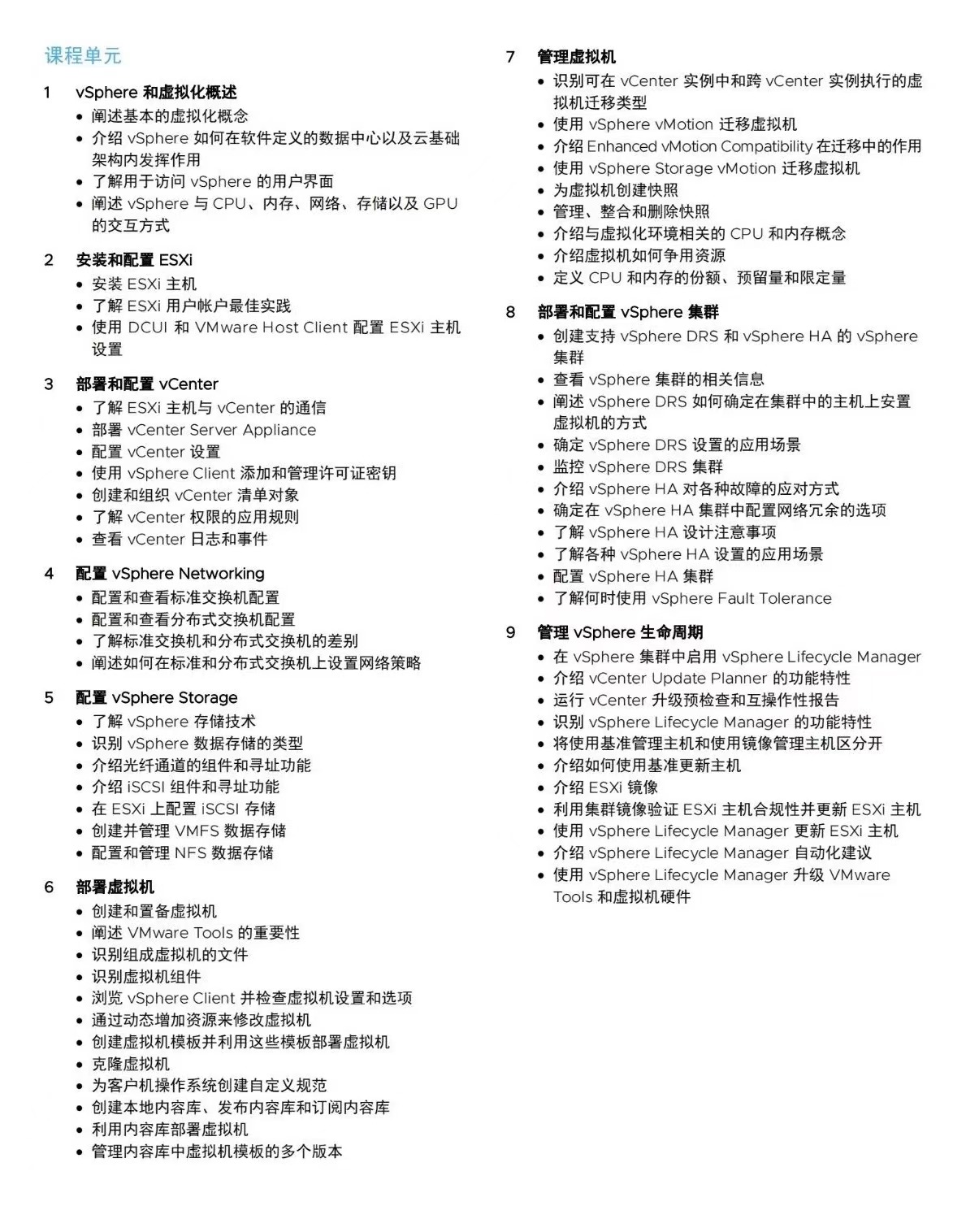 本課程為期四天,內容豐富,提供密集的實踐培訓,將重點講授如何安裝、配置和管理VMware vSphere 8,(其中包括 VMware ESXi? 8 和 VMware vCenter? 8)。通過學習本課程,您將為管理不同規(guī)模企業(yè)的 vSphere 基礎架構做好準備。本課程可為您學習軟件定義的數(shù)據(jù)中心內的大多數(shù) VMware 技術奠定基礎。
