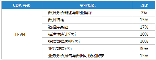 CDA Level I 包含以下科目:《職業(yè)道德與操守》、《數(shù)據(jù)庫與 SQL 基礎(chǔ)》、《統(tǒng)計學(xué)(初級)》、《業(yè)務(wù)數(shù)據(jù)分析》、《數(shù)據(jù)可視化》