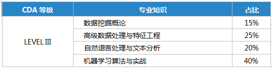 CDA Level III 包含以下科目:《數(shù)據(jù)挖掘與高級數(shù)據(jù)處理》、《自然語言處理與文本分析》、《算法應(yīng)用與實戰(zhàn)》