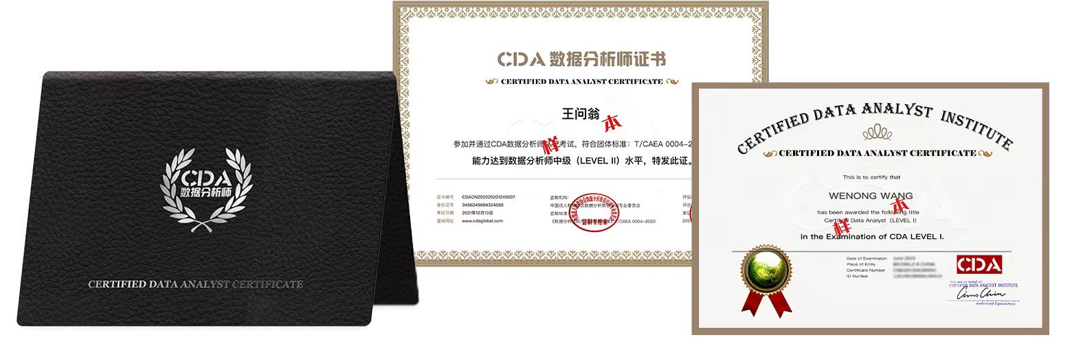 參與 CDA 考試并通過后 ,考生獲得 CDA 中英文證書 ,英文證書 ,CDA Institute 頒 發(fā);中文證書 ,中成協(xié)數(shù)據(jù)分析教育委員會監(jiān)制。
