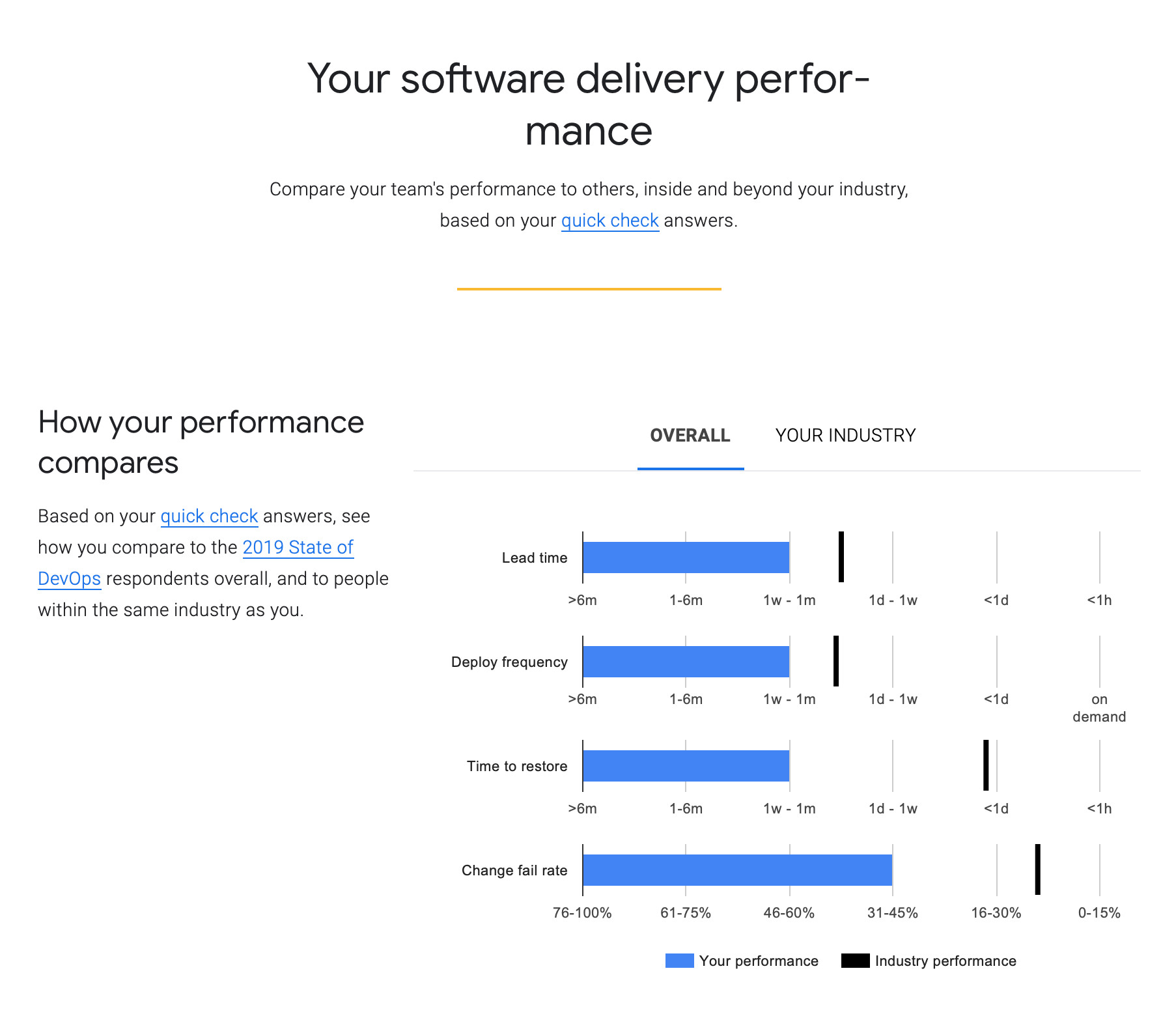 這是我寫作本文想要回答的核心問題。如果你能夠度量自己的四個黃金指標了,也能夠隨時拿出一組確切的數(shù)據(jù),我們就能做行業(yè)基準測試比較了。